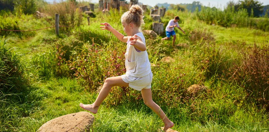 In de Koppeltuinen vind je een avontuurlijk blotevoetenpad met waterspeelplek! Voel zand, water, steen, hout en gras onder je voeten terwijl je zelf het water oppompt en over spannende bruggetjes klautert.