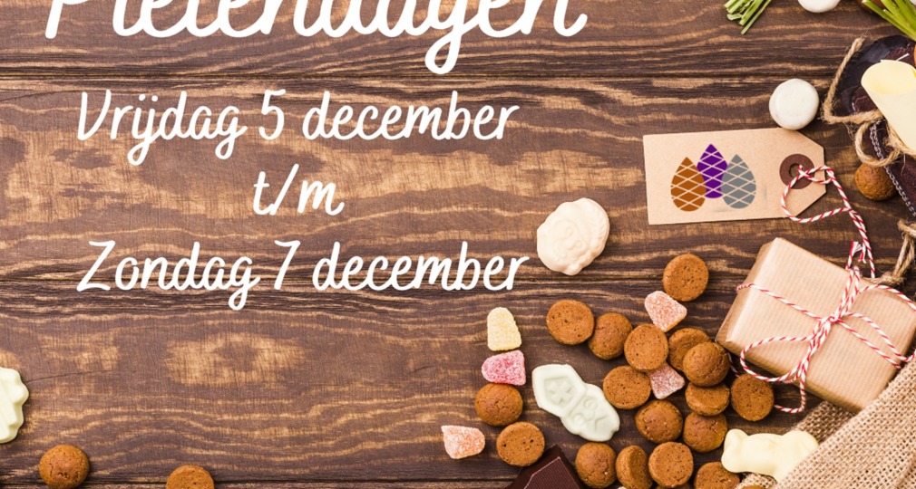 Pietendagen Vrijdag 5 december van 16.30 tot 19.30 uur Zaterdag 6 december van 16 tot 19 uur Zondag 7 december van 16 tot 19 uur